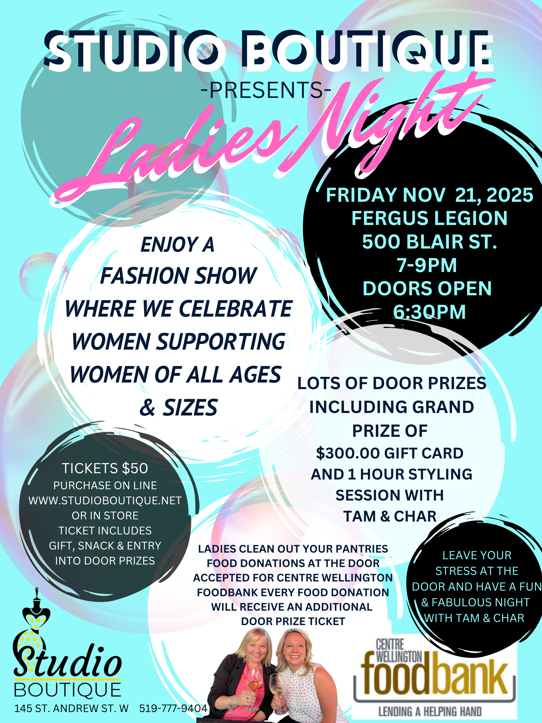 JOIN TAMMY AND CHAR AS THEY SHOWCASE NEW FALL AND WINTER FASHION LINES, NEW JEWELLERY, PURSES AND SO MUCH MORE. CASH BAR, CHARCUTERIE CUPS, MUSIC, AND LOTS OF FASHIONS TO CHOOSE FROM. BRING YOUR FOODBANK DONATIONS AS EVERY ITEM IS AN ADDITIONAL TICKET TO ENTER THE DRAW FOR SOME AMAZING PRIZES.