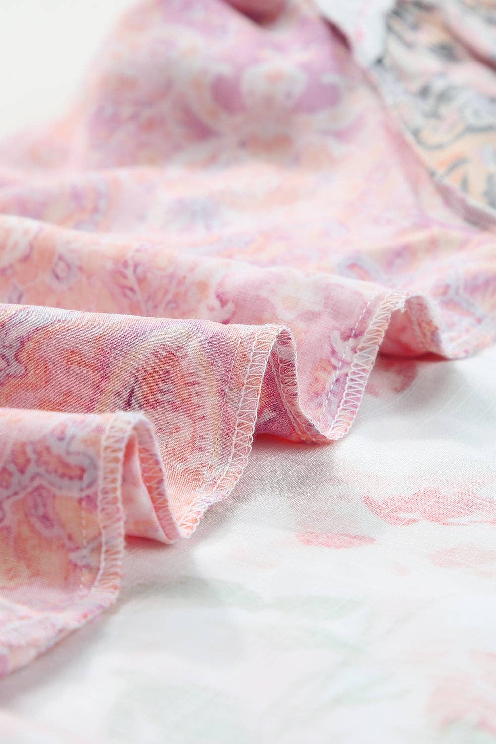 Multicolor Floral Patchwork Shirred Cuff Buttoned V Neck Blouse: Multicolor / 100%Viscose /